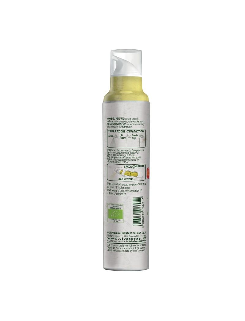 Завдяки технології «мішка на клапані» спеціальна пляшка Vivo Spray дозволяє скоротити споживання приблизно на 90% (флакон об’ємом 250 мл фактично еквівалентний приблизно 3 літрам звичайної пляшки олії) і захистити вміст від повітря і світло протягом тривалого часу. Це дозволяє зберегти всі цінні властивості приправи незмінними та завжди залишати її свіжою, наче її щойно віджали. Кожна секунда розпилення забезпечує 1,8 мл/1,7 г (15 ккал) продукту, достатнього для приправи кожної страви.