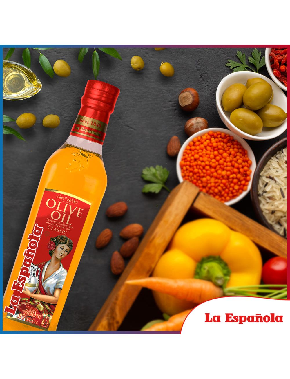 Класична оливкова олія La Española, що характеризується м’яким смаком та ароматом, пропонує м’яке поєднання приємної гіркоти, фруктів та спецій. Збалансована та легка на смак, наша класична оливкова олія ніжно збагатить та доповнить смак вашої страви.