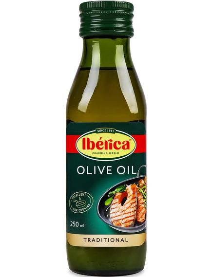 Iberica Олія оливкова рафінована 250 мл — це олія оливкова рафінована, яка виготовляється іспанським брендом Iberica. Олія рафінована пройшла процес очищення від домішок і неприємних запахів, що робить її більш нейтральною за смаком і запахом порівняно з олією першого віджиму.