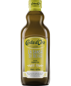 Склад: олія оливкова Помас рафінована 97%, олія оливкова першого холодного віджиму Extra Virgin 1,5%, оливкова олія 1,5%. Costa d'Oro Sansa являє собою суміш, що складається із залишків рафінованої й оливкової олії найвищої якості, отриманої за допомогою сучасних технологічних процесів....