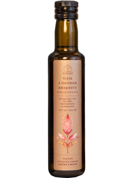 Амарантова олія, отримана з насіння рослини амаранту методом холодного віджиму, постає як природний еліксир, наповнений користю для здоров’я та краси. Завдяки ніжному смаку й аромату ця олія є джерелом здорових жирів, вітамінів і антиоксидантів, що робить її універсальною добавкою як до кулінарних, так і до косметичних процедур.
