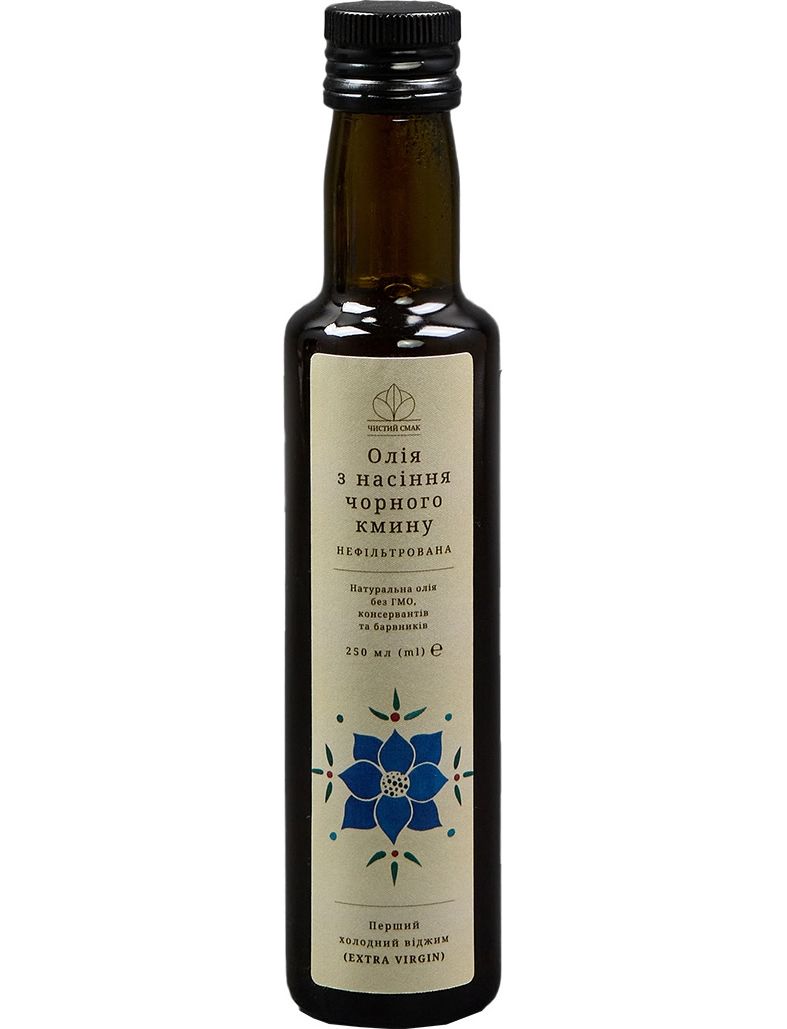 Олія з насіння чорного кмину постає як природний еліксир, виготовлений методом холодного віджиму. Дана технологія забезпечує максимальне збереження вітамінів, мікроелементів і головне структури поліненасичених жирних кислот, яких в олії чорного кмину 26. Серед них 18 ненасичених і 8 насичених жирних кислот, включаючи Омега-6, Омега-9, Омега-3, пальмітинову та стеаринову кислоти. Крім того, олія чорного кмину містить низку основних поживних речовин, таких як, фосфоліпіди, фітостероли, вітаміни (E, D, A, C і B), а також життєво важливі мінерали, такі як фосфор, кальцій і залізо.