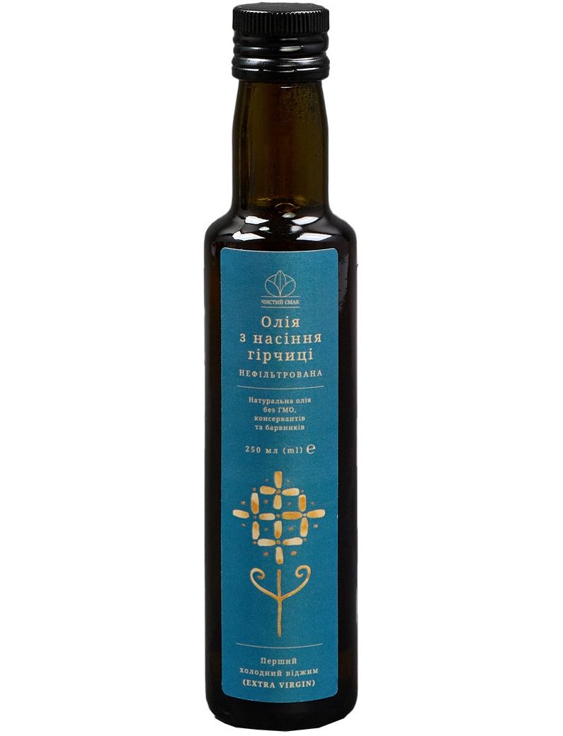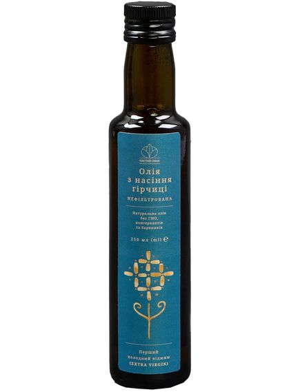 Олія холодного віджиму з насіння гірчиці - це натуральний продукт, який має багато корисних властивостей і використовується як додаток до різних страв.