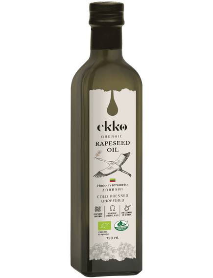 Органічна нерафінована ріпакова олія холодного віджиму ЕККО офіційно сертифікована - 100% органічна, надзвичайно чистий склад - натуральний продукт. Виготовляється тільки з органічно вирощеного ріпаку найвищої якості, з дотриманням найсуворіших стандартів виробництва олії та з використанням найсучаснішої технології холодного віджиму.
