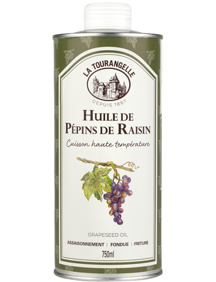 Виноград століттями спокушав людей своїми легендарними червоно-білими нектарами. Але вони мають ще один спокусливий аспект. При пресуванні крихітні виноградні кісточки дають зелену олію з чудовими властивостями. Олія виноградних кісточок La Tourangelle Expeller-Pressed має легкий смак і містить високий рівень поліненасичених жирів . Його також можна нагрівати до 450°F, що робить його ідеальним партнером для приготування здорової їжі.