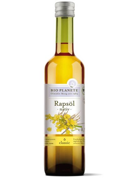 Зважаючи на смак, наша BIO PLANÈTE Rapeseed Oil Virgin з генетично не модифікованих рослин ріпаку також є доповненням для холодної кухні. Його хрусткий смак насіння додає тісності ситним стравам, досягаючи повного потенціалу в салатах з капусти, квасолі, макаронах і картоплі. Ріпакова олія також добре підходить для маринування овочів.