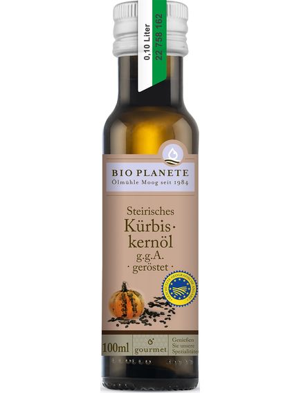 Наша гарбузова олія BIO PLANÈTE Штирії PGI поєднує вишуканий смак з австрійськими традиціями. Делікатне обсмаження та ретельний холодний віджим насіння гарбуза розвиває характерний аромат олії: чудовий фруктовий, але водночас злегка терпкий. Олія з обсмаженого гарбузового насіння має давні традиції у Штирії – на півдні Австрії. Насіння для нашої олії надходить, серед іншого, з сімейної ферми Міхаеля та Мартіна Лампрехта у східній Штирії. У 1995 році вони перейшли на органічне землеробство. Це рішення випливало з переконання, що виробництво найякісніших рослинних та тваринних продуктів можливе лише за умови роботи в гармонії з природою. Мартін Лампрехт передав цей підхід до сільського господарства своєму синові Міхаелю, і зараз сімейна ферма існує вже в четвертому поколінні. На приблизно 80 гектарах сільськогосподарських угідь та 18 гектарах лісу, окрім гарбузів та кукурудзи, вирощуються також зернові продукти як корм для власних тварин ферми, таким чином втілюючи ідеал замкнутого циклу. У своєму виробництві ручна робота та традиції роблять нашу гарбузову олію Штирії PGI справжнім делікатесом: велике насіння олійного гарбуза очищається від гарбузів та промивається чистою водою. Після сушіння насіння подрібнюють та обережно обсмажують. Як тільки гарбузове насіння досягне оптимальної обсмажки, його один раз обережно пресують холодним способом. Наша гарбузова олія зі Штирії PGI (Захищене географічне зазначення) отримала найвищий рейтинг «А» у всіх чотирьох категоріях Planet Score.