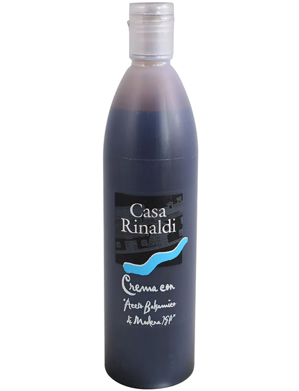 Наш крем з бальзамічним оцтом Modena PGI є унікальною варіацією бальзамічного оцту Casa Rinaldi з Модени. Це чорна та блискуча приправа, що характеризується щільністю 1,22, здатна додати типовий солодкий аромат оцту кожній страві, приємний на смак завдяки збалансованому кисло-солодкому смаку. Наш особливий рецепт із високим вмістом вареного виноградного сусла робить його особливим, вишуканим і незамінним продуктом на кухнях високого класу, ідеальним як для покращення смаку страв, так і для збагачення їх унікальними прикрасами.