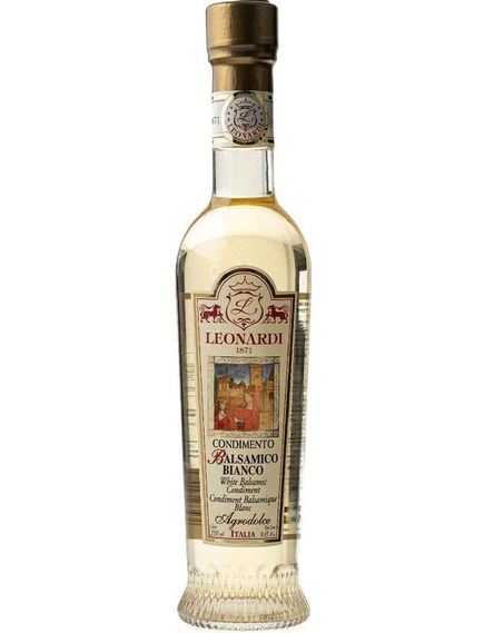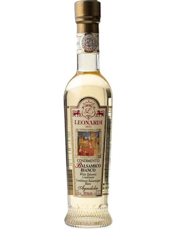 Leonardi Оцет бальзамічний білий — це варіант бальзамічного оцту, що виготовляється з тих самих виноградних сортів, що й традиційний чорний бальзамік, але за особливою технологією, що дозволяє зберегти його білий колір. Білий бальзамічний оцет має інший смаковий профіль порівняно з класичним чорним, оскільки він не містить карамельного кольору, що додається в традиційний бальзамік.