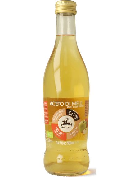Яблука вирощують у садах Доломітових Альп. Завдяки високій якості цієї сировини органічний яблучний оцет Alce Nero має інтенсивний смак і насичений смак. Нижча кислотність яблучного оцту, порівняно з винним, робить його особливо придатним для салатів та інших страв.
