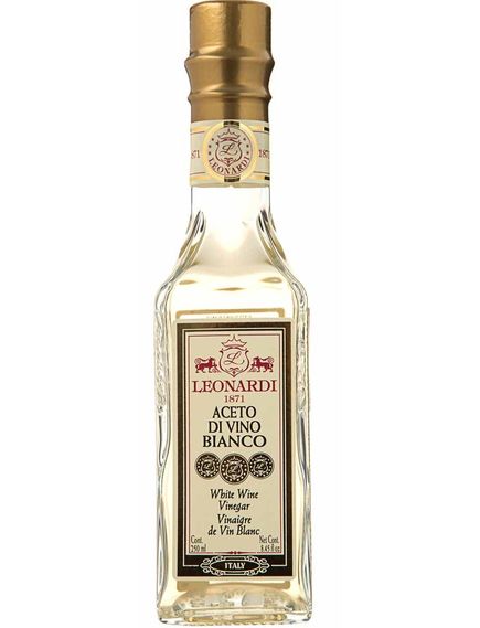 Оцет винний з білого вина Leonardi — це високоякісний оцет, виготовлений на основі білого вина, вироблений італійським брендом Leonardi, який славиться своїми елегантними та натуральними оцтами. Відомий своїм традиційним підходом до виробництва, Leonardi створює оцет, що зберігає всі смакові особливості винограду, з якого він виготовлений, додаючи легку кислинку та ароматні нотки.