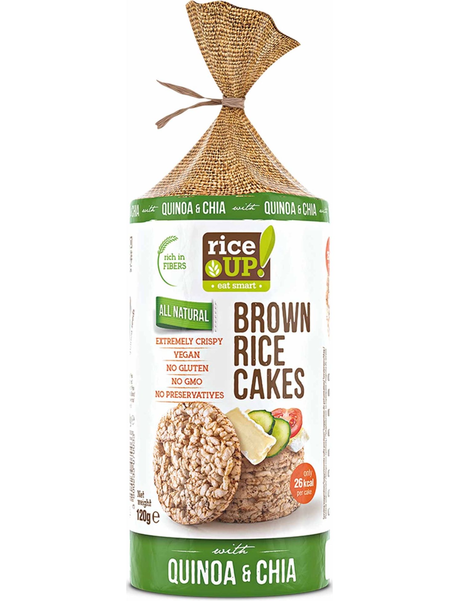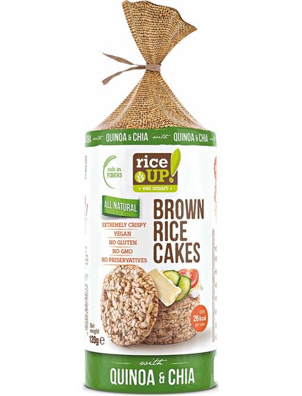 Насолода, наповнена поживними речовинами: тістечка з коричневого рису з кіноа та чіа! Відчуйте корисну суміш насіння кіноа та чіа з нашими хрусткими коржиками з коричневого рису. Ця суперхарчова комбінація пропонує ситний хрускіт, повний основних поживних речовин, ідеально підходить для здорових перекушувачів, які шукають смачні ласощі, багаті клітковиною.