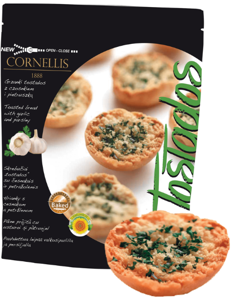 Склад: борошно пшеничне, приправи (олія соняшникова рафінована, часник, сіль) (23%), олія соняшникова рафінована (7%), дріжджі, сіль, петрушка (0,5%), цукор. Продукт містить глютен. Може містити сліди арахісу, молока, кунжуту, сої та гірчиці.