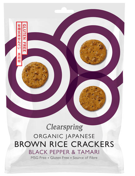 Ці легкі та хрусткі японські крекери без глютену випікаються досконалістю. Смачний спосіб насолодитися перевагами органічного цільнозернового коричневого рису, чорного перцю та природно витриманого тамарі. Наші виробники другого покоління використовують інгредієнти найвищої якості, традиційні рецепти та перевірені часом процеси для виробництва цих справжніх корисних закусок.