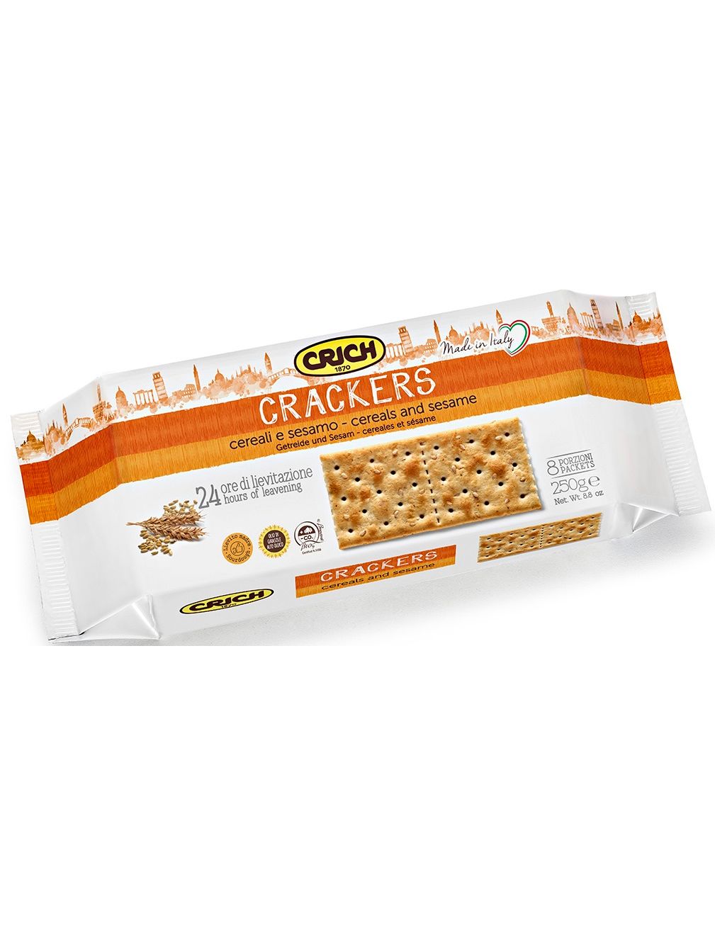 Склад: борошно зернових культур 84% (борошно пшеничне, борошно спельтове, борошно кукурудзяне, борошно рисове, промішок пшеничне, борошно ячмінне солодове), олія соняшникова, насіння кунжуту 2,5%, регулятор кислотності: гідрокарбонат натрію, сіль, дріжджі маткові 0,6%, дріжджі пивні, ароматизатор оливковий натуральний.