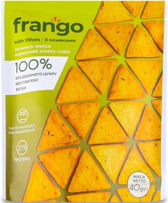Склад: хумус класичний 90% (нутове пюре, вода, тахіні, олія рослинна соняшникова, сік лимона, сіль, зіра мелена, часник сухий), оливки (не менше 5%), борошно нутове, борошно кукурудзяне, чебрець сушений Це натуральна солодка закуска, виготовлена шляхом зневоднення традиційного хумусу з...