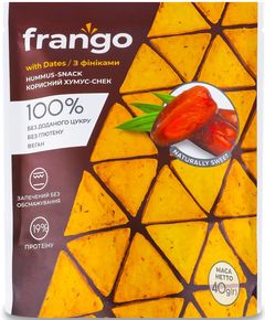 Склад: хумус класичний 80% (нутове пюре, вода, тахіні, олія рослинна соняшникова, сік лимона, сіль, зіра мелена, часник сухий), фінік сушений (не менше 10%), борошно кукурудзяне, сироп топінамбура. Це натуральна солодка закуска, виготовлена шляхом зневоднення традиційного хумусу з...