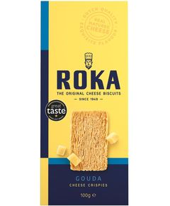 Склад: борошно пшеничне (клейковина), сир гауда (30%) (молоко), жири рослинні (пальмова, кокосова) і олії (ріпакова), сіль. Сирне печиво виготовляється за оригінальним рецептом 1949 року голландським кондитером Йо Руденрієм, засновником ROKA. Вони виготовлені з вишуканого листкового тіста...