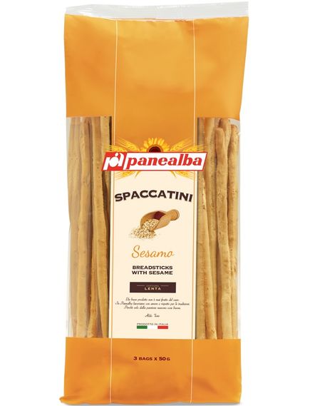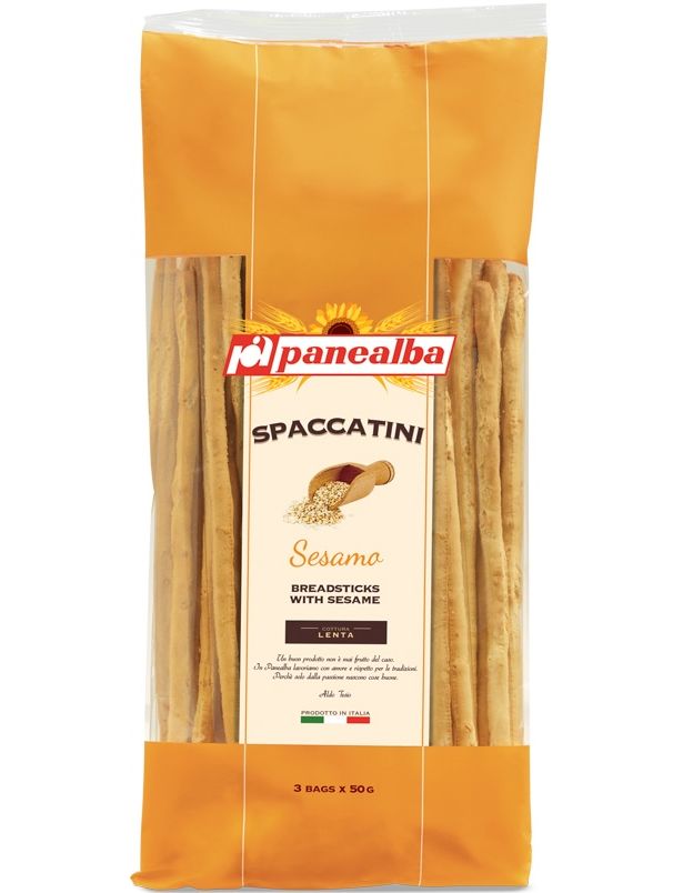 Хрускітість хлібних паличок Spaccatini, золотиста поверхня та очищене насіння кунжуту поєднуються в чудовому, сильному смаку.