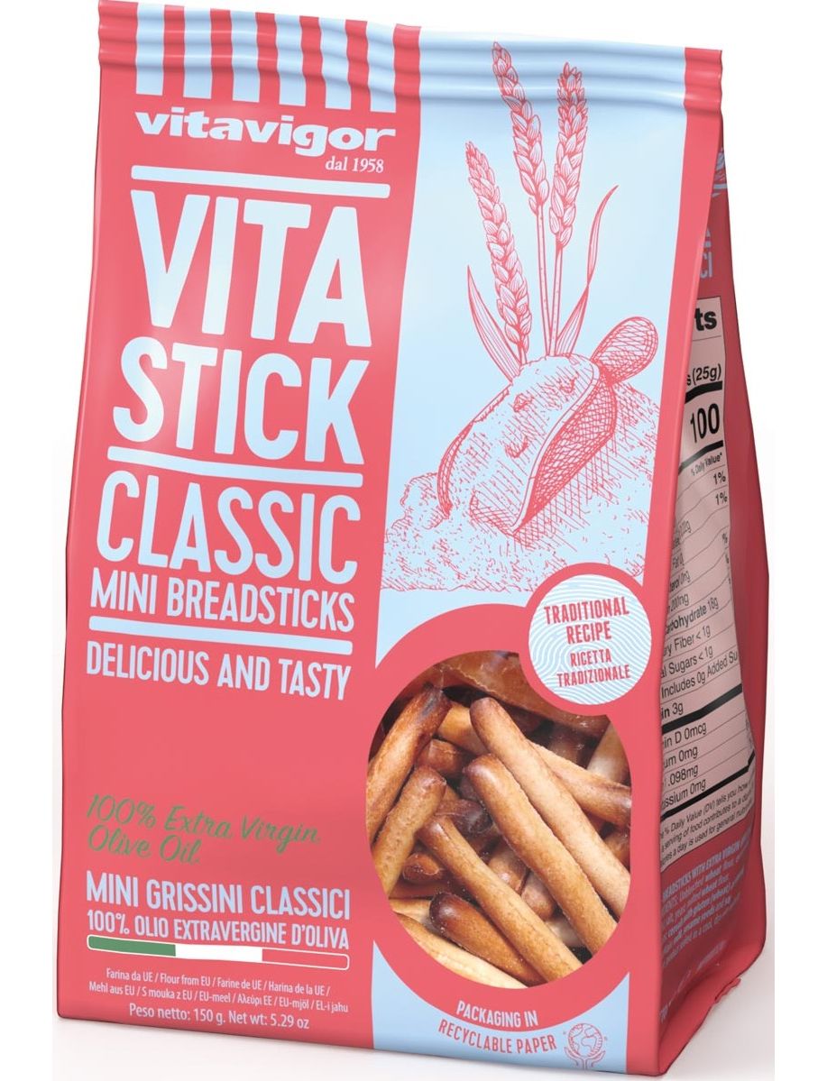 Класичний смак і «міні» форма цих традиційних міні-хлібних паличок ідеально поєднуються з соусами та вершковим сиром, щоб супроводжувати аперитиви та основні страви.