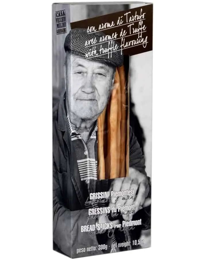 Ці грисіні, скручені вручну, збагачені ароматними шматочками розмарину в тісті та мають хрустку текстуру. Вони ідеально поєднуються з вершковим сиром або міцним вином і ідеально підходять як гарнір до антипасті.