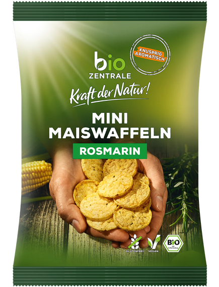 Наші міні-кукурудзяні вафлі Biocentrale з розмарином зараз доступні за зниженою ціною! Наші біоцентральні міні-кукурудзяні вафлі з розмарином – це хрусткі, ароматні кукурудзяні снеки, які є альтернативою картопляним чіпсам та кукурудзяним чіпсам. Вони збагачені розмарином, веганські, безглютенові та не смажені. Наші міні-кукурудзяні вафлі ідеально підходять як невеликий перекус між основними прийомами їжі, як смачний супровід до келиха вина та як основа для креативних канапе.