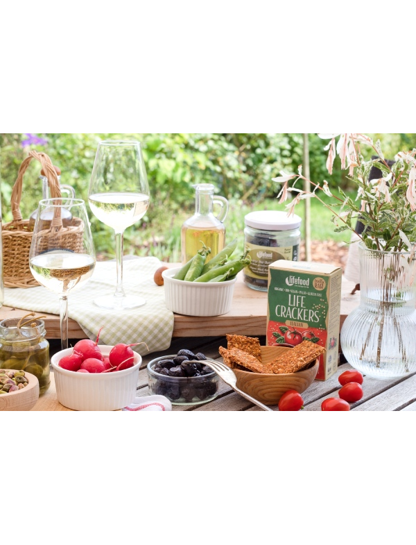 Склад: пророщена гречка* (32 %), насіння золотистого льону*, бразильський горіх*, морква*, в’ялені помідори* (16 %; помідори*, морська сіль*), цибуля*, часник*, нерафінована морська сіль, прованські трави* (0). ,3 %), базилік сушений* (0,2 %). *=Органічний сертифікований продукт