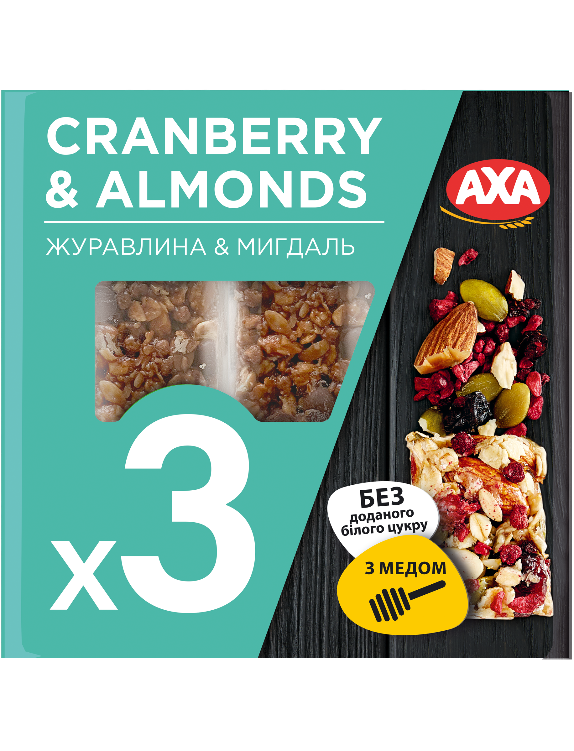 AXA Батончики без цукру злакові Журавлина-Мигдаль 30 г