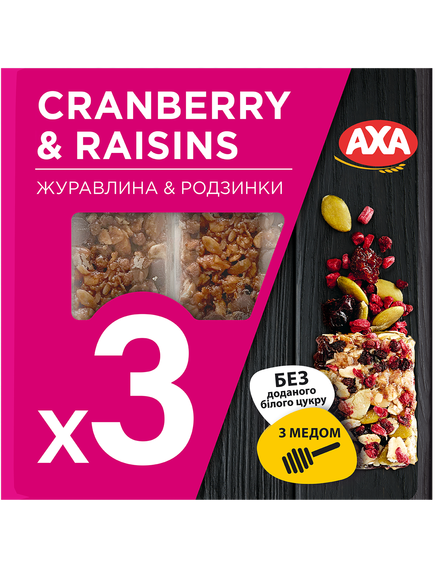 AXA Батончики без цукру злакові Журавлина-Родзинки 30 г