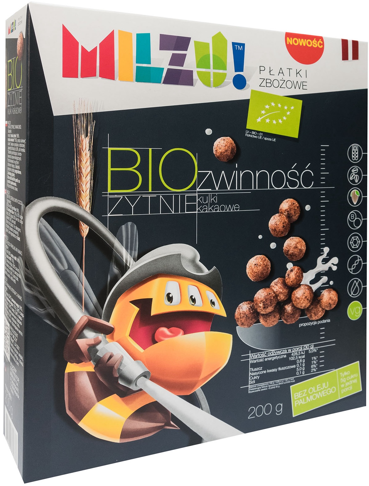 Житньо-вівсяні пластівці BIO Zwność, какао-кульки, 200 г – це злакові пластівці, які є альтернативою традиційним продуктам цього типу. Вони виготовлені на основі цільнозернового борошна та містять цінні вітаміни та мінерали.
