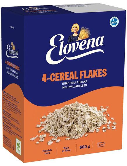 Пластівці для каші 4 різновиди зернових — смачний продукт для всієї родини! Унікальна технологія виробництва пластівців дає змогу зберегти корисні властивості цілісного зерна. Продукт не містить консервантів, ароматизаторів і барвників.