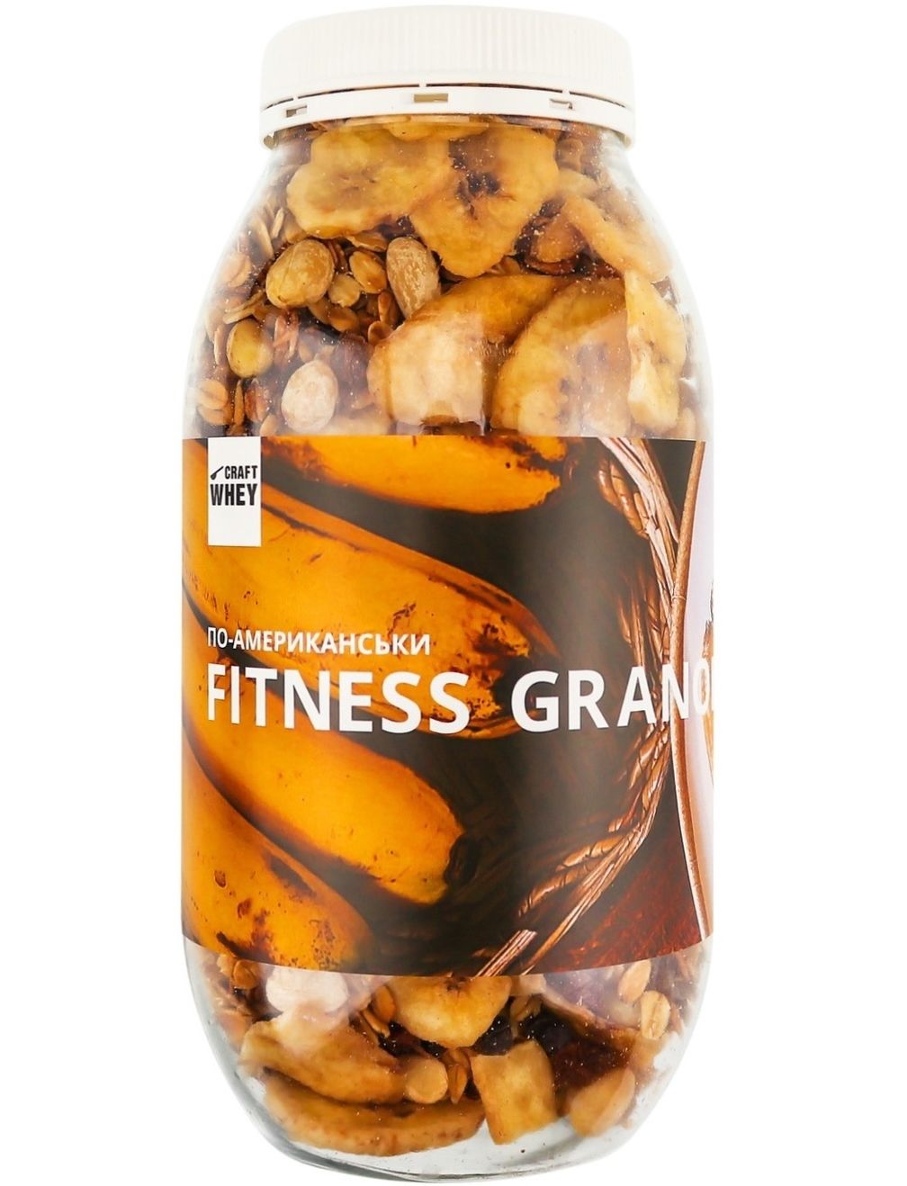 Склад: цільнозернові вівсяні пластівці, родзинки, банановий чіпс, арахіс, молочний шоколад, мед, морська сіль.