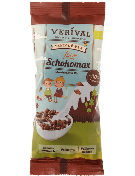 Обережно, дорогі шокоголіки – тут є небезпека залежності! Коли хрусткі хрусткі шоколадні подушечки з шоколадною начинкою та делікатно танучі шоколадні краплі Verival Schokomax, схожі на бісквітне печиво, поєднуються з фруктовими шматочками полуниці, це може означати лише одне: більше немає поганого настрою зранку! Щоб гарантувати, що шоколадні мюслі містять лише необхідну кількість цукру, ми залучили до допомоги експертів з питань харчування та дітей віком 6-10 років для створення рецепту. Для дитячого доброго ранку!