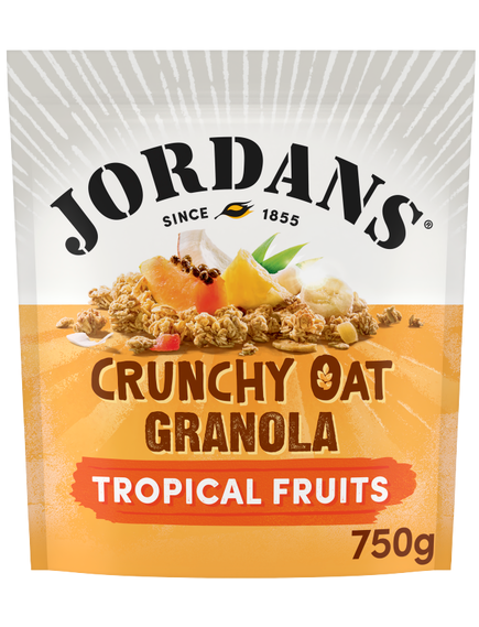 Jordans Tropical Fruits Granola – це смачний та поживний сніданок від британського бренду Jordans, який поєднує хрусткі запечені вівсяні пластівці з натуральними тропічними фруктами. Ця гранола забезпечує чудовий баланс смаку та користі, роблячи ваш ранок приємнішим.