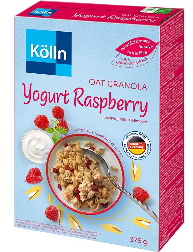 Смачні хрусткі цільнозернові зерна, присипані смачною сумішшю йогурту та доповнені малиновими хрустками, роблять цей фірмовий мюслі винятковим смаком.