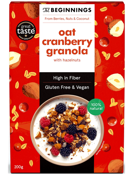 У цій гранолі ми використовуємо сублімовану журавлину без цукру. Це латвійська суперфуд-ягода, повна корисних речей. Така гранола ідеально поєднується з сезонними фруктами, молоком, йогуртом або як доповнення до десертів.