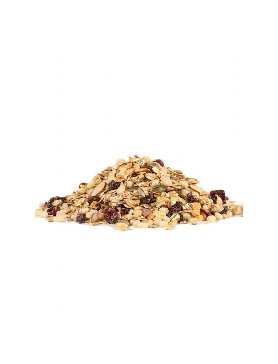 Наш рецепт безглютенових мюслі базується на пластівцях для сніданку, які спочатку винайшов доктор Максиміліан Бірчер-Беннер, швейцарський дієтолог, понад 100 років тому. Він розумів, що їжа - найкращі ліки, але він також знав, що її не з'їдять, якщо вона не буде смачною. Ось чому наш фантастичний рецепт мюслі — це смачна суміш злегка підсмажених цільних зерен, коричневих рисових чіпсів, родзинок, сушених яблук і журавлини, насіння соняшнику, мигдалю, гарбузового насіння та кокосової стружки. Він необроблений і містить менше цукру, ніж гранола. Кінцевим результатом є дуже поживна каша, зосереджена на цільному зерні, яка викликає звикання до смаку!