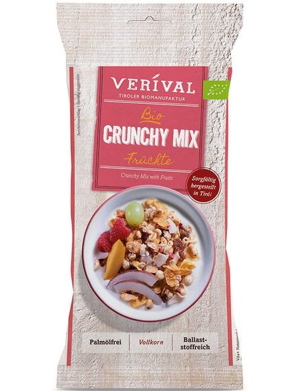 Кранчі - невід'ємна частина ранкових ритуалів багатьох любителів сніданку. Для нашої хрусткої суміші Verival Crunchy з фруктами навіть не потрібна пальмова олія. Хрустка текстура забезпечує потрібну хрусткість, а фрукти – додаткову солодкість. Зробіть щось корисне для себе та свого тіла, адже наша хрустка суміш з фруктами не тільки смачна, але й містить цільнозернові вівсяні пластівці, які багаті клітковиною, вітамінами та мінералами. Непросіяне борошно регулює рівень цукру в крові та довше забезпечує ситість. Тож ненажерливий апетит не має шансів. Крім того, харчові волокна, що містяться в крупі, забезпечують здорове травлення.
