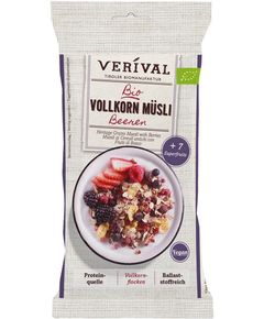 Склад: вівсяні пластівці* , пшеничні пластівці*, листковий хрусткий рис з ацеролою* 15% (рис*, цукор*, концентрат яблучного соку*, концентрат соку бузини*, порошок ацероли* 0,5%), ягоди* 7% (ожина* журавлина* (журавлина* 60%, тростинний цукор* 39%, соняшникова олія*), червона смородина*, чорна...