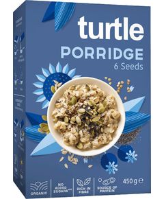 Склад: цільнозернові вівсяні пластівці*, насіння* 18% [мак*, гарбузове насіння*, гречка*, лляне насіння*, соняшникове насіння*, насіння чіа (шавлія іспанська)*], вівсяні висівки*. *Сертифікований органічний продукт Вівсянка «Черепаха» з 6 видів насіння, що містить органічне насіння...
