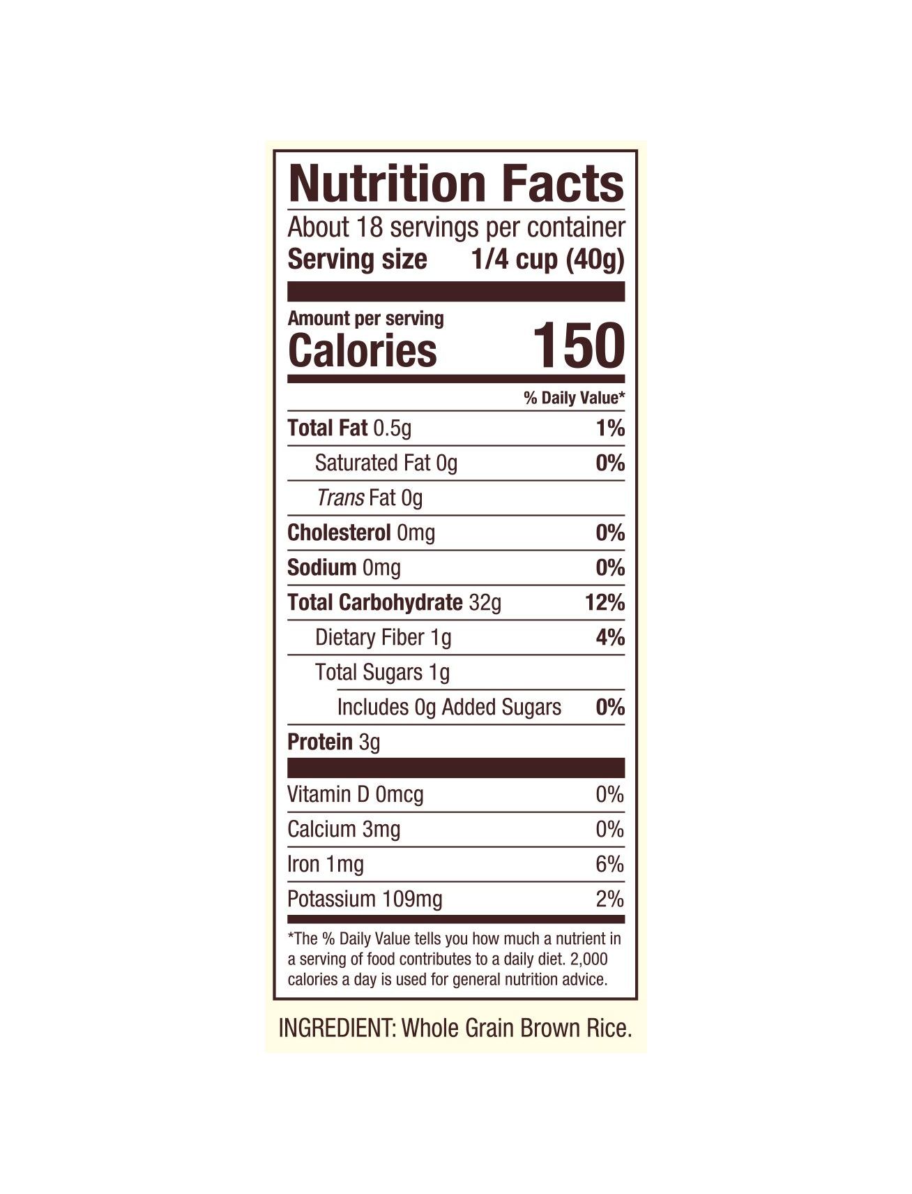 Наша цільнозернова каша з коричневого рису містить 3 поживних грами білка та 2 ситних грами клітковини на порцію.