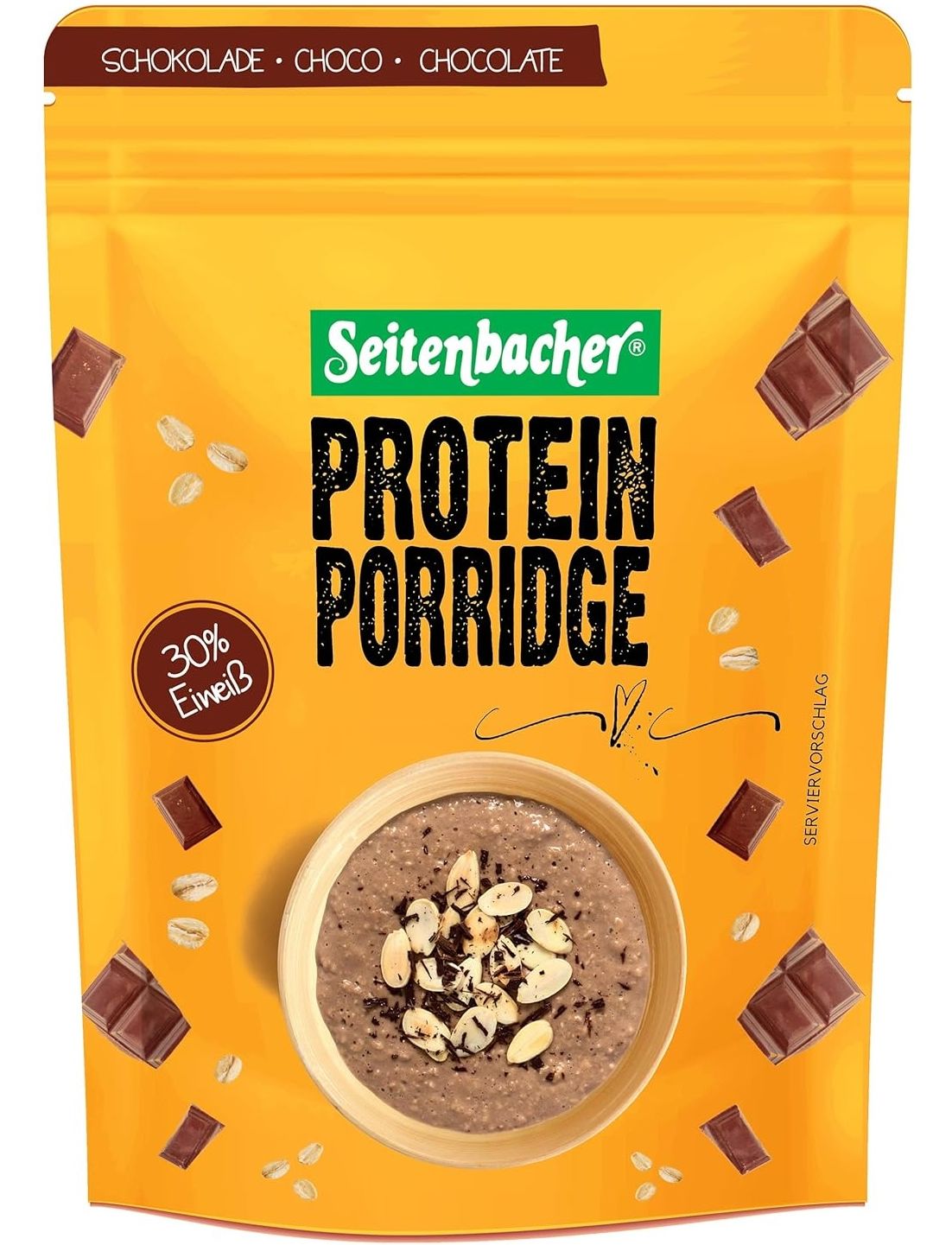 Склад: цільнозернові вівсяні пластівці, молочний протеїн, шоколад (тростинний цукор, какао-масло, незбиране сухе молоко , какао-порошок, емульгатор: рапсовий лецитин), протеїнові чіскі (гороховий білок, рисове борошно, пшеничний білок), фруктоза, знежирений какао-порошок.