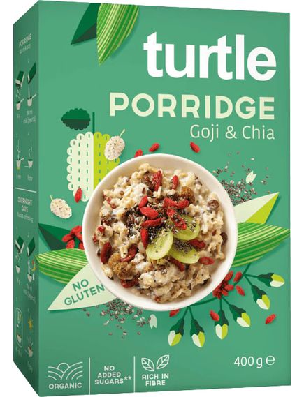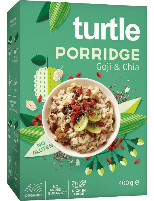 Додайте своїй каші смаку з нашою органічною вівсянкою «Черепаха» з годжі та чіа. Насолоджуйтесь додатковими перевагами суперфудів: годжі, чіа, білої шовковиці та лляного насіння.