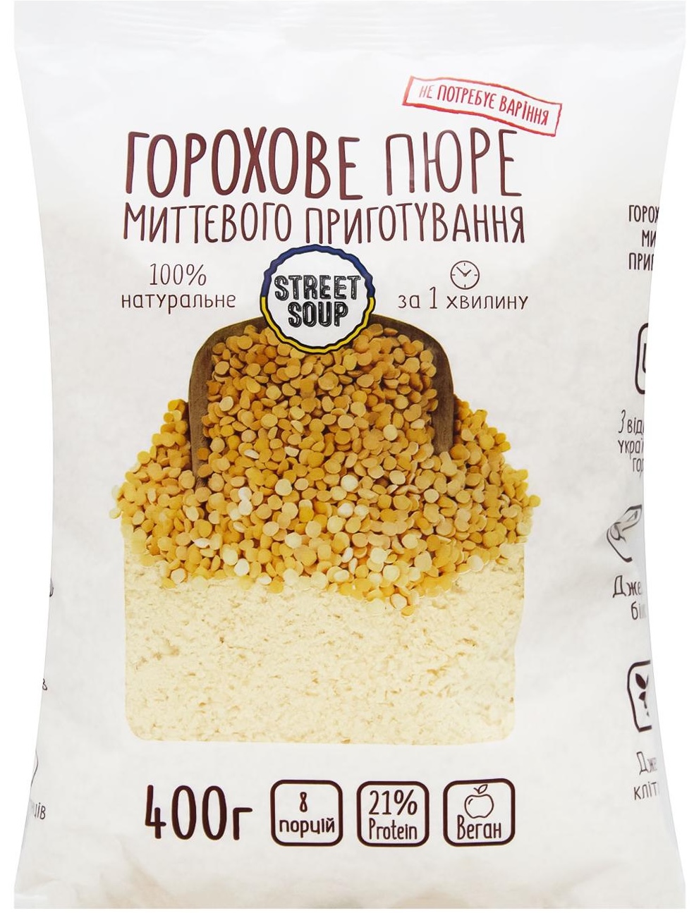 Сухе Горохове пюре Street Soup миттєвого приготування 400 г в упаковці - це новий натуральний продукт миттєвого приготування, який:
