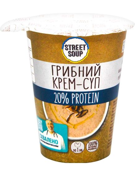Грибний крем-суп Street Soup 50 г в стакані - це натуральний крем-суп миттєвого приготування в зручному паперовому стакані!
