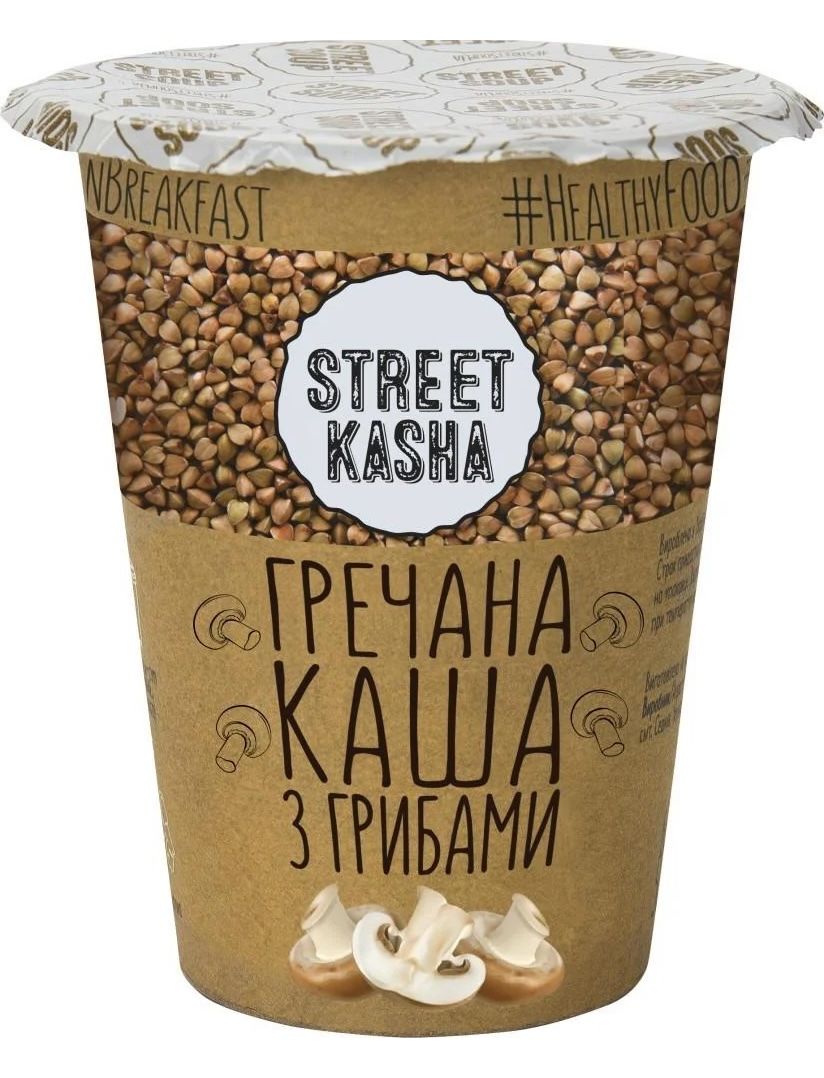 Гречана каша з грибами Street Kasha 50 г в стакані - це натуральна каша миттєвого приготування в зручному паперовому стакані!