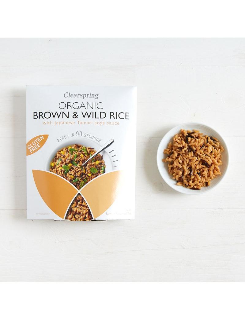 Приваблива суміш органічного довгозернистого коричневого рису та чорного дикого рису, яку дуже легко та швидко приготувати. Ці універсальні зерна зручно упаковані в пакет, придатний для використання в мікрохвильовій печі, для максимальної свіжості та смаку. Приправлені нагородженим соєвим соусом тамарі подвійної міцності, ці смачні зерна можна їсти гарячими або холодними. Насолоджуйтесь ними окремо, у смажених стравах та салатах або як поживний та яскравий гарнір.