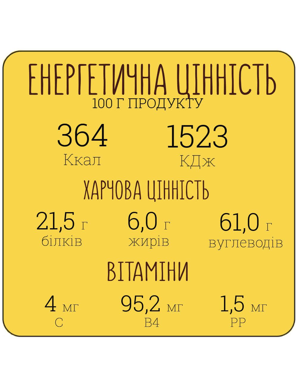 - Містить високоякісний легкозасвоюваний білок рослинного походження, який ставлять в один ряд з білком птиці і деяких м'ясних продуктів.