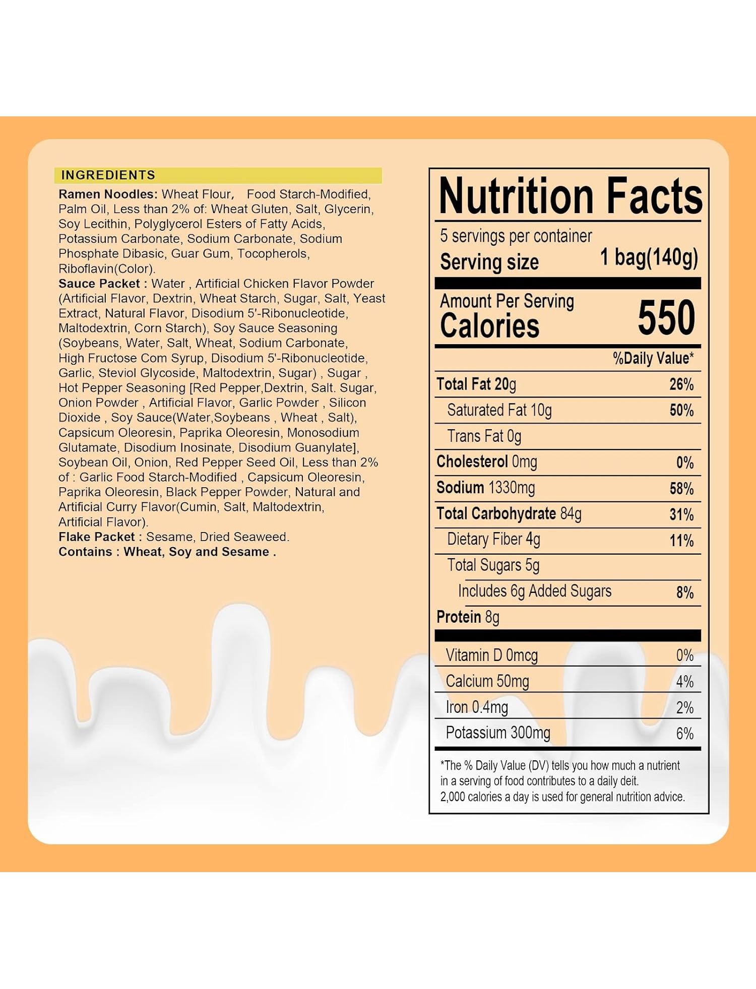 Склад - суп (12,7%): вода, штучний курячий порошок, соєвий соус, білий цукор, порошок червоного перцю, порошок перцю чилі, соєва олія, цибуля, олія насіння червоного перцю, часник, модифікований картопляний крохмаль, екстракт паприки, знебарвлений екстракт чилі, Порошок чорного перцю, порошок каррі.