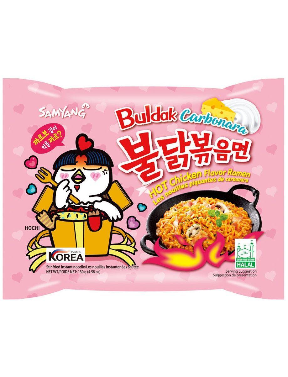 Скуштуйте вогненну пряність і вершкову солодкість Samyang Buldak Hot Chicken Flavor Ramen - Carbonara. Відчуйте ідеальне поєднання корейського тепла та італійської насолоди для справді незабутнього досвіду рамену.